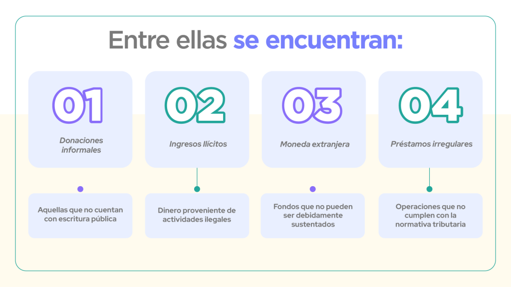 De la misma manera, es importante tener claro qué situaciones no son aceptadas por el organismo como sustento válido y, por tanto, pueden ser consideradas como desbalance patrimonial.